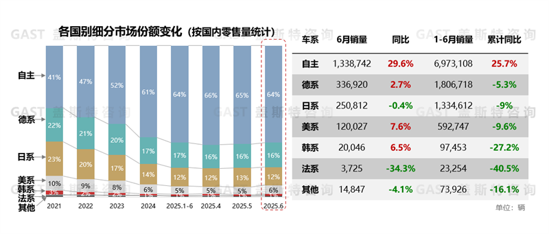 市場份額角度,上半年自主品牌份額為64%,較2024全年增長3個(gè)百分點(diǎn)。