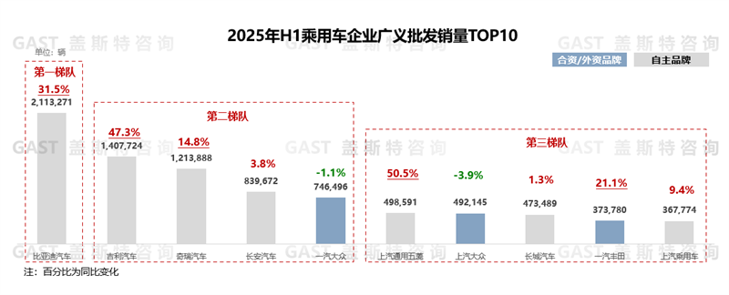 乘用車企業(yè)TOP10:自主品牌占據(jù)7席