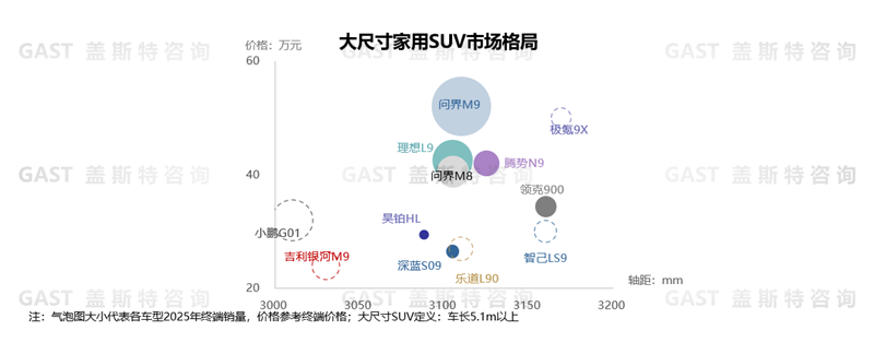 蓋斯特觀點(diǎn):下半年將有至少6款大尺寸SUV新品上市,疊加上半年上市車型逐步上量,全年銷量有望突破35萬輛。從競爭態(tài)勢看,30萬級以上市場格局相對固化,新進(jìn)入者上量難度大;而20-30萬級市場因車企集中布局,未來競爭將持續(xù)加劇,其中深藍(lán)、樂道的新車具備較大突圍潛力。