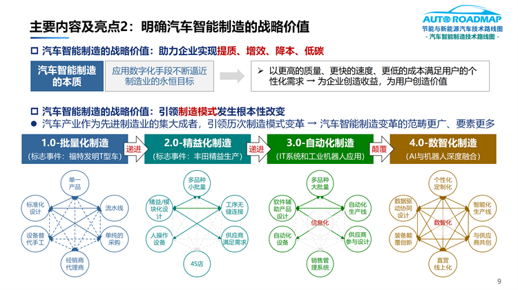 2.明確了汽車(chē)智能制造的戰(zhàn)略價(jià)值,即助力企業(yè)實(shí)現(xiàn)提質(zhì)、增效、降本、低碳