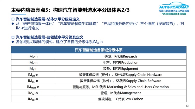5.全球首次開(kāi)創(chuàng)性地構(gòu)建了專(zhuān)門(mén)面向汽車(chē)產(chǎn)業(yè)的智能制造分級(jí)體系(iM-n),以及環(huán)節(jié)、要素和等級(jí)三維架構(gòu)
