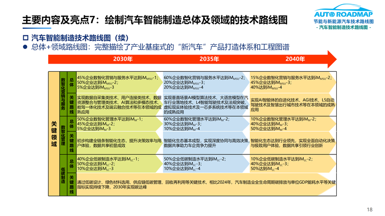 7.完整描繪了具有產(chǎn)業(yè)基座式的“新汽車(chē)”產(chǎn)品打造體系和工程圖譜(即汽車(chē)智能制造總體及分領(lǐng)域的技術(shù)路線圖)